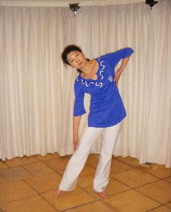 両手は体側を触れながら、息を吐きながら体重を移動。
